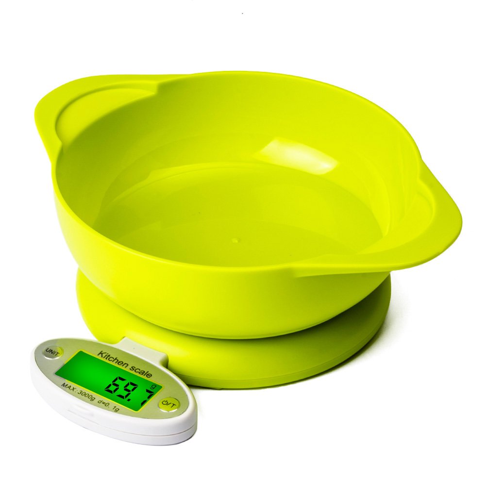 You buy VOLADOR Digital Kitchen Food Scale,Precision Kitchen Scale with Removable Bowl,0.1g/0.01oz to 3kg/6.6lb Capacity,Great to Weigh Fruits,Vegetables,Snacks&Liquid with Coupon : Smart30 will be discounted 30% price Manufactured to rigorous quality specifications, the Pronto weighs up to 11 pounds (5050 grams) in graduations of just 0.05 ounces (1 gram) to help you achieve your diet and weight goals. The Pronto also features an ever handy Tare button which automatically subtracts the weight of any bowl or container to calculate the net weight of your ingredients. The Pronto's Tare and Unit buttons provide an audible and tactile click confirmation so you never have to push twice when preparing meals in a hurry. The Pronto's aesthetic design complements any kitchen décor and it cleans quickly and stores easily. The Pronto ships with 2 AAA batteries included, plus a bonus set of batteries and is guaranteed with Ozeri's 1 Year No-Hassle Warranty.