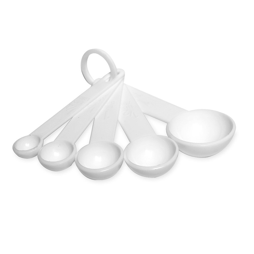 • The Hard Plastic Measuring Spoons 5-Piece Set by Topenca for Healthy Cooking and Baking are Dishwasher-Safe Home Kitchen Accessories and Tools for Wet or Dry Ingredients is a