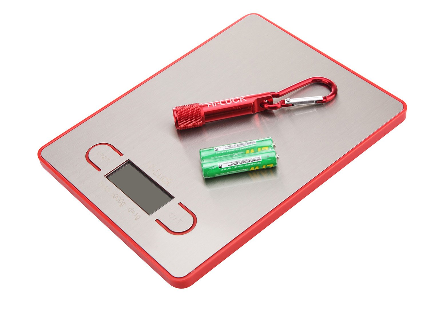 You buy Hi-Luck 5000g Digital Pocket Kitchen Scale(Red) with Coupon : Smart30 will be discounted 30% price Manufactured to rigorous quality specifications, the Pronto weighs up to 11 pounds (5050 grams) in graduations of just 0.05 ounces (1 gram) to help you achieve your diet and weight goals. The Pronto also features an ever handy Tare button which automatically subtracts the weight of any bowl or container to calculate the net weight of your ingredients. The Pronto's Tare and Unit buttons provide an audible and tactile click confirmation so you never have to push twice when preparing meals in a hurry. The Pronto's aesthetic design complements any kitchen décor and it cleans quickly and stores easily. The Pronto ships with 2 AAA batteries included, plus a bonus set of batteries and is guaranteed with Ozeri's 1 Year No-Hassle Warranty.