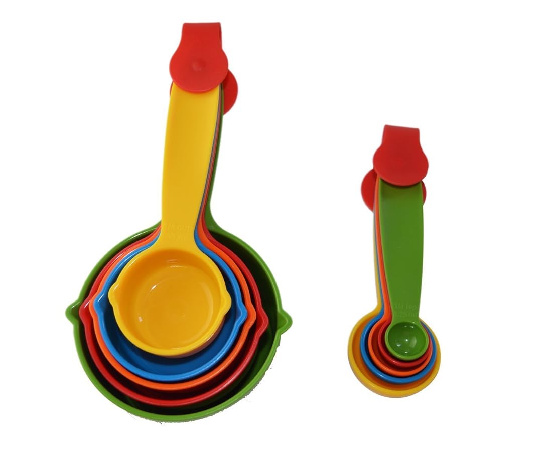 • The Astra shop Stackable Good Grips Plastic Measuring Cups and Spoons, Mixed Colors, Set of 10 is a