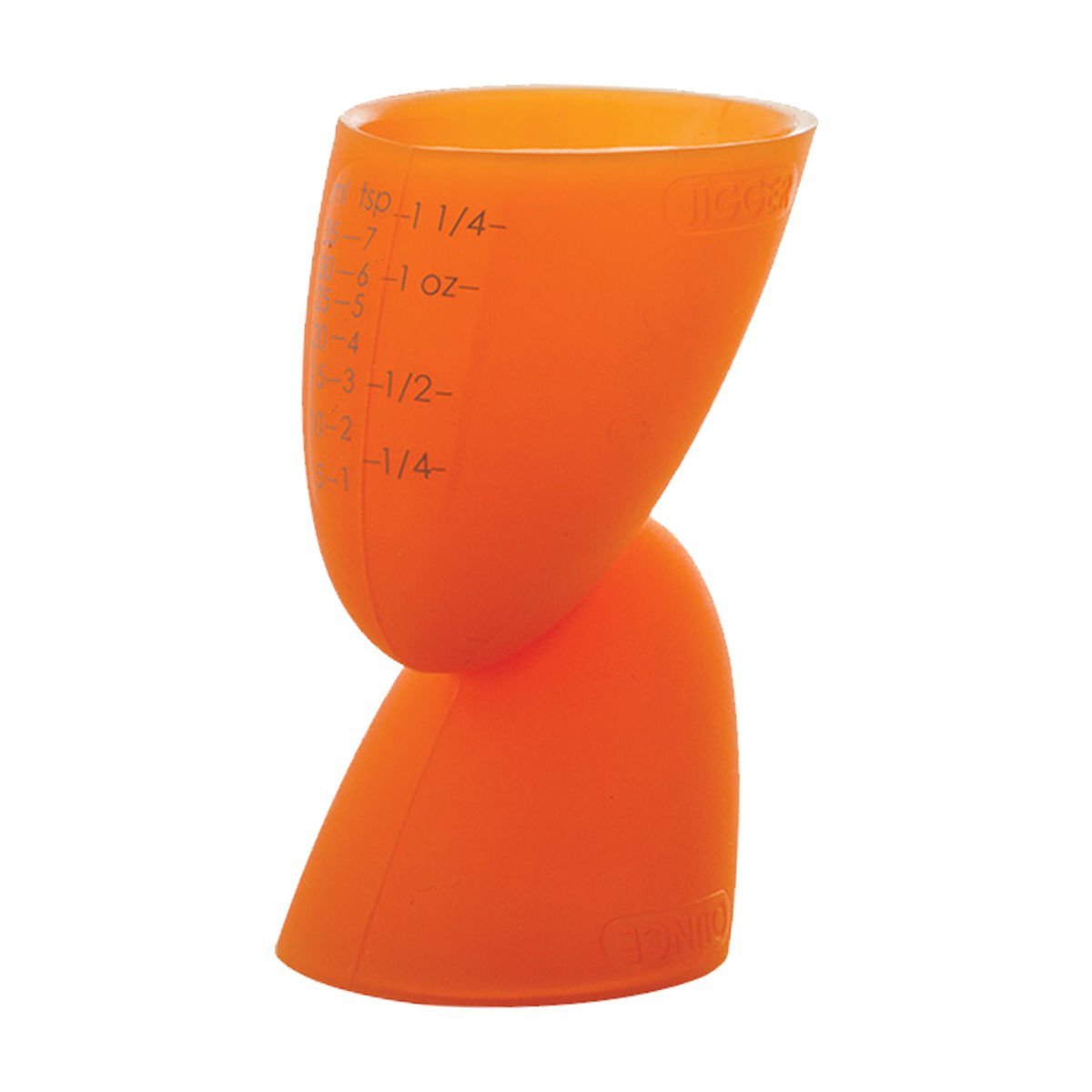 • The Casabella Silicone 1 Oz Cocktail Jigger Measuring Tool (Orange) is a