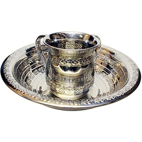• The Ultimate Judaica Washing Set Stainless Steel - Cup 5.5"H Bowl 12"W X 3"H is a