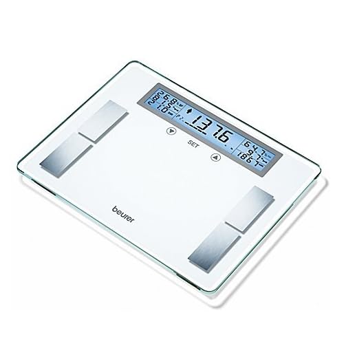 • The Beurer Glass Body Analysis Bathroom Scale with Extra Large LCD Display is a