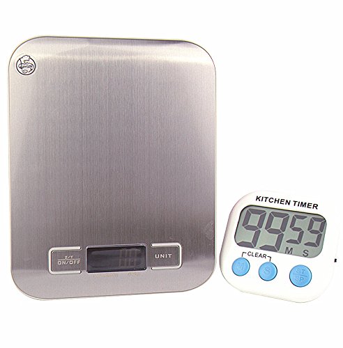 • The BYGZB Digital Multifunction Food Kitchen Scale, Stainless Steel, 11lb 5kg with g/oz/lb/ml Switchable, With an Extra Free Kitchen Timer is a