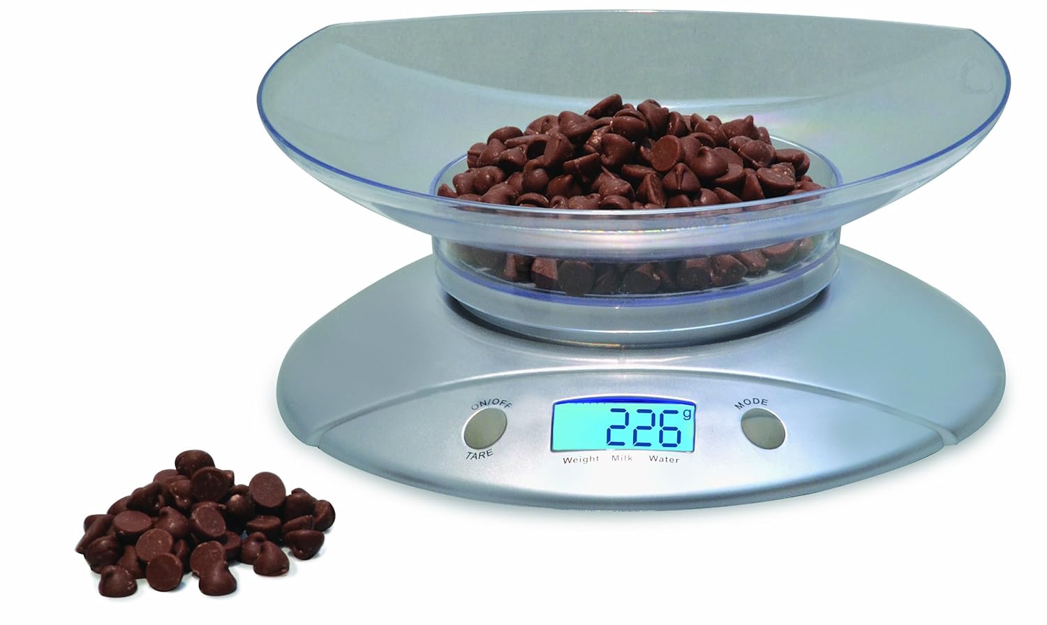 - Precision Tare Button calculates the net weight of your ingredients (automatically subtracts the weight of any bowl or container)
