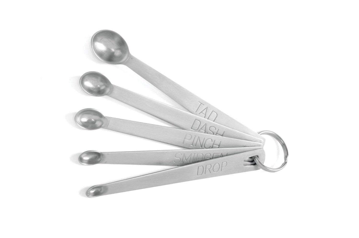 Measuring Spoons 18/10 Stainless Steel Mini 5 Pc:New is best for youItem Details Fun yet useful, 5 stainless steel measuring spoons. Set includes; tad, dash, pinch, smidgen and a drop. Measures 5'/13cm. Dishwasher safe. Product Description Fun yet useful, 5 stainless steel measuring spoons. Set includes; tad, dash, pinch, smidgen and a drop. Measures 5' /13cm. Dishwasher safe. BUY IT NOW