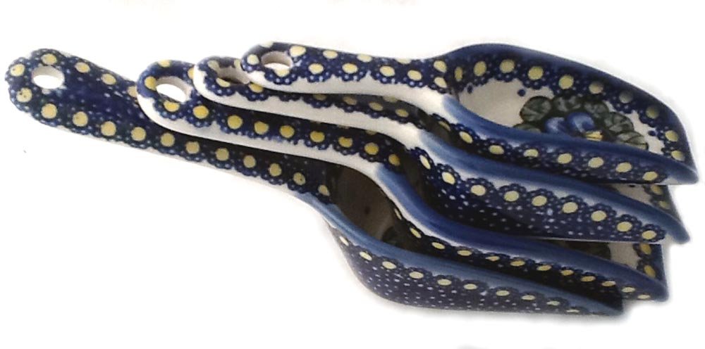 Set of 4 Unique Polish Pottery Kitchen Sugar Flour Kibble Candy Scoops - 4 Sizes - in Signature Pattern JZB or Pansy best Measuring Tools & Scales