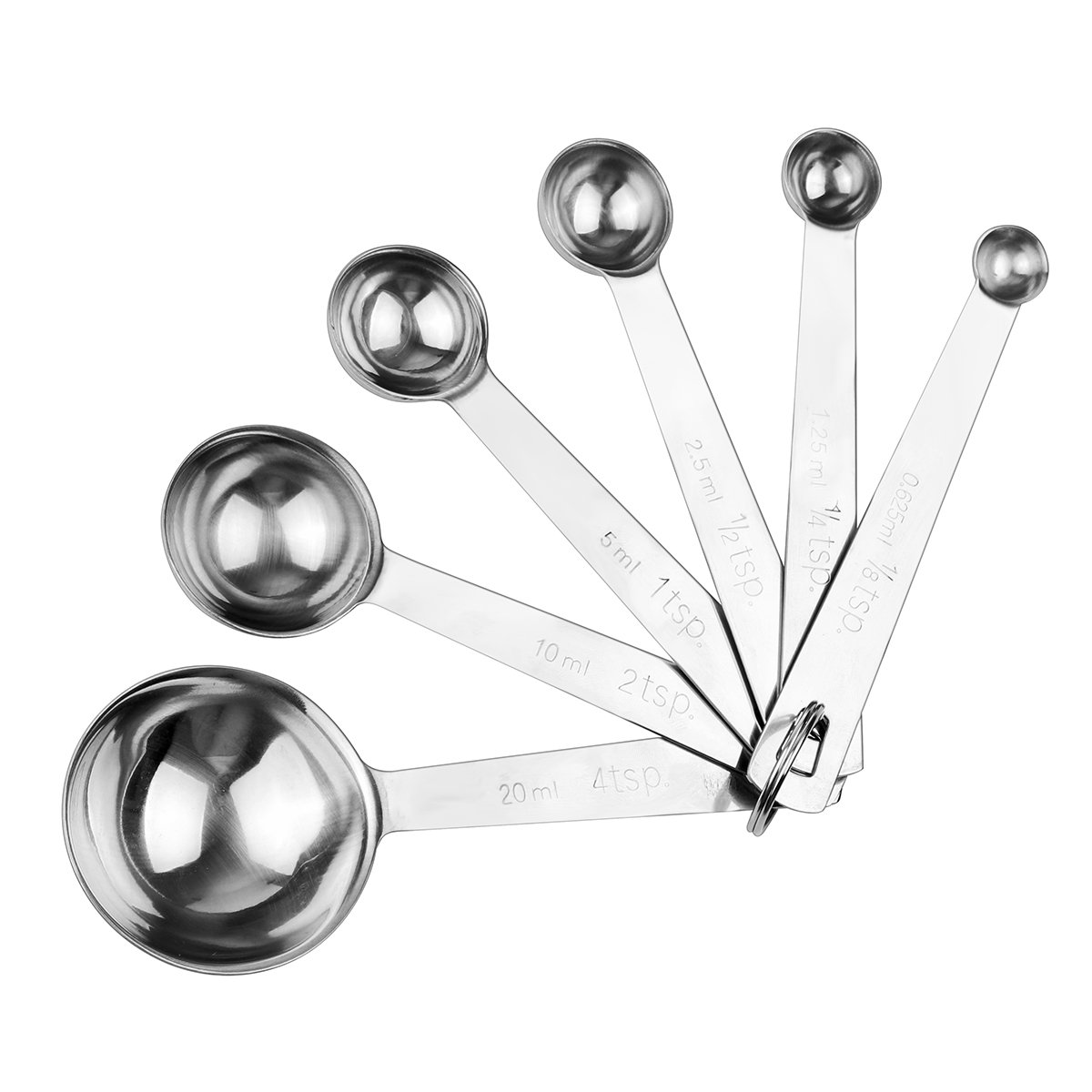 Sunsbell 18/8 Stainless Steel Measuring Spoons, Set of 6 for Measuring Dry and Liquid Ingredients is best for youHave you ever had trouble measuring ingredients for your dish? Do you want to bake something new, but don't know how much 1/8-tsp or 7.5 ml is? Now, with Sunsbell Stainless-Steel Measuring Spoons, cooking and baking is so simple! RIGHT ACCURATE MEASURE FOR RECIPES -Round-shape spoon heads and perfectly weighted handles, easy to use. Dishwasher safe, hand washing is recommended for best results. -Each spoon is engraved with the correct measure so they are durable and attractive looking, will never rub off and do the purpose they are intended for very well. HIGH QUALITY STAINLESS STEEL -Sunsbell measuring spoons are made of 304 stainless steel which means our spoons will never rust and can safely be placed in the dishwasher after use. -Made of high-quality ,durable and food grade stainless steel. Multiple metrics can give you an accurate measure for recipes without the hassle. THE LAST SET OF MEASURING SPOONS YOU'LL EVER NEED TO BUY -We know you don't want to buy a new set of measuring spoons every few months, so we've designed Sunsbell measuring spoons to last a lifetime. -Each spoon is finely crafted from one piece of strong and long-lasting stainless steel which is stain and rust-resistant, with precision engraved measurements that won't ever wear off. Package Includes: 1/8 teaspoon (0.63ml), 1/4 teaspoon (1.25ml), 1/2 teaspoon (2.5ml) 1 teaspoon (5ml), 2 teaspoon (10ml), 4 teaspoon (20ml) BUY it now - surprise your family and friends! This promotion is time limited.