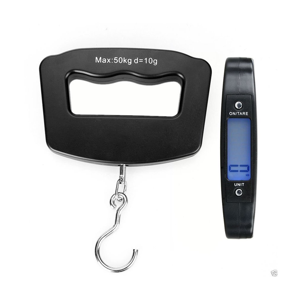 Geekercity 50kg 10g Portable LCD Digital Hanging Luggage Weight Electronic Hook Scale Weight Balance Steelyard Mini Handle Hook Scale with LCD Display is best for youFeature: 1.Multi-purpose scale suitable for family and travel 2.Lightweight, portable and easy to use 3.Durable Stainless steel hanging hook 4.High strength, compact, firm hand strap 5.LCD screen display with blue background light for convenient use in the dark4.High strength, compact, firm hand strap 6.Multiple weighing units: g, Kg, Lb, OZ 7.Automatic calculation with digital LED readout when weighting 8.Automatic Power OFF function 9.Hang hook scale with tare function 10.Minimum weight: 10g 11.Maximum weight: 50Kg 12.Size: 120mm x 80mm x 25mm 13.Unit net weight: 167g 14.Material: ABS plastic 15.Powered by: AAA battery(Not Included) 16.Color: Black Packing including: 1 * Portable Electronic Scale 1 * User Manual