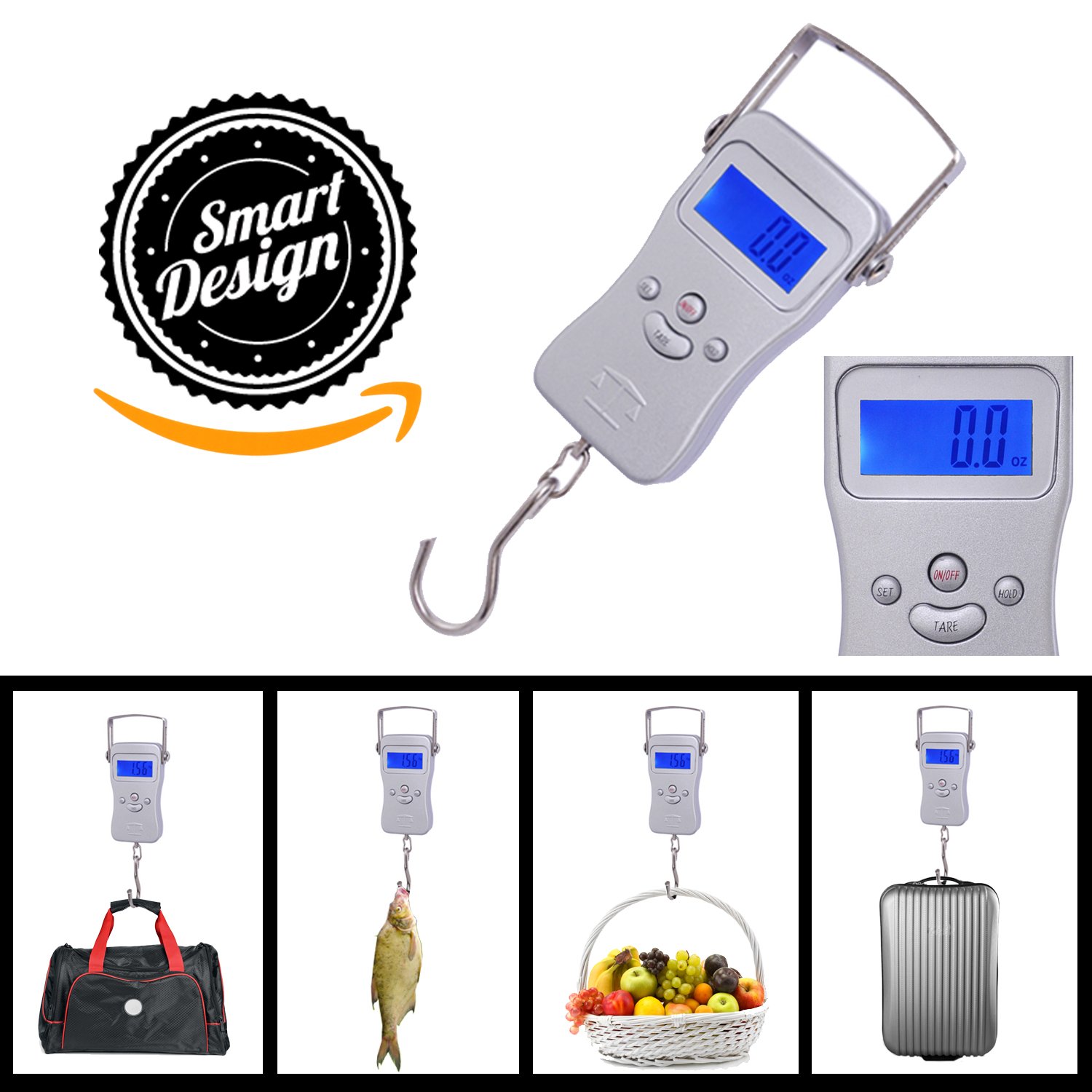 Koval Inc. 110 lb Portable Digital Weighing Food Gram Balance Measuring Luggage Hanging Scale with Backlit LCD Display is best for youPortable digital scale with 50kg/110lbs/1760oz Max Capacity Feature: • CE approved. • Overload indication. • Low power indication. • 50kg/110lbs/1760oz Max weight capacity. • ON/OFF, SET, HOLD, TARE Buttons for use. • 10 grams accuracy is more precise than 100 g accuracy! • Power Supply: 2 pcs CR2032 Button Cell Batteries (Included!!) • Three kinds of Modes/Units: Kilogram, Pound and Ounce. Specifications: Overall Size: 7-1/2' L x 2-1/4' W x 1' H Package Includes: • 1x High-quality Digital Hanging Scale • 2x CR2032 Button Cell Batteries (Installed) • 1x Instruction