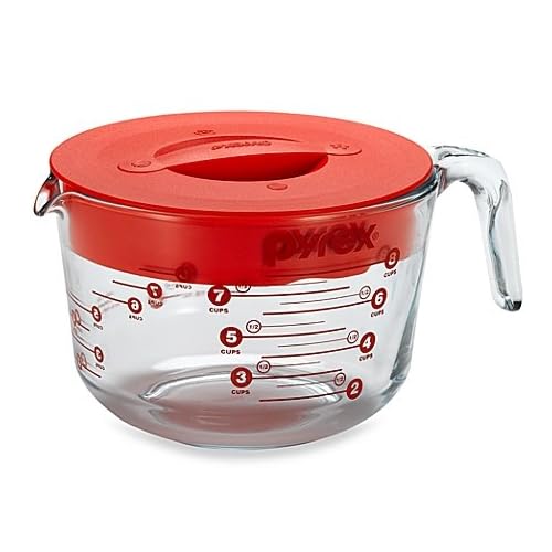 Pyrex Prepware 8-Cup Measuring Cup, Clear with Red Lid and Measurements by Pyrex is best for youThis Pyrex 8-cup measuring cup is great for mixing brownies, cupcakes, cookies and more. It comes with a red plastic lid which makes it great for storage and for use in the microwave.