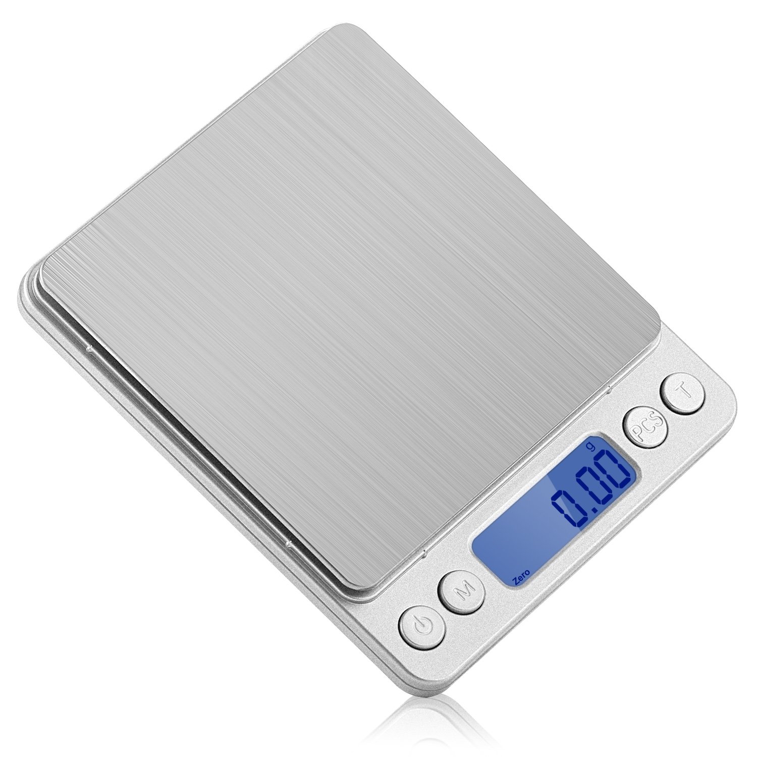 Pocket Scale Aoleca Digital Pocket Kitchen Food Scale with LCD Display Stainless Steel Silver Smart Weigh Electronic Scale is best for youAoleca Portable Multifunctional Digital Stainless Steel Mini Kitchen ScaleThis little Kitchen Scale was made with two things in mind; size and accuracy.It’s small frame makes it easy to carry while providing anyone with enough surface area to weigh anything up to 3000g/105.82oz.The scale itself is reinforced so that it is as durable as possible,all while maintaining extreme accuracy, giving results in up to 0.1g/0.005oz of precision.Its accuracy and build is matched only by its versatility, quickly measure ingredients, postage, gems, medication and more.Calculate in Grams, Ounces, Carats, and grain, or convert between units instantly with a single press of a button without ever having to re-measure.Enable its 60-second function in order to conserve battery life, make sure that the Aoleca pocket scale is never without juice thanks to this smart function,where this mini kitchen-scale will automatically turn itself off after 60 seconds.Deactivate it with a simple push of the mode button in order to make sure that your experience with the kitchen scale is as enjoyable as possible.On First Use:Turn on the scale and press and hold the /b'T' tare button until a default number appears on the screen.Specifications:Weight Capacity : 3000g/105.82ozDivision: 0.1g/0.005ozMeasurement Units: Gram, Ounce, Carat, GrainFunction Buttons: Power / Mode / PCS / TareAuto-Off: 60 secondsPlatform: 3.94 X 3.94 inchesProduct dimension : 6.3*6*1.5 inchesPower: 2 X AAA batteriesWarranty: 1 Year warranty with 30-day money back guarantee.What’s in the box?1 x Digital Kitchen Scale1 x Scale Cover1 x Platform Cover1 x Instruction Manual2 x AAA batteries
