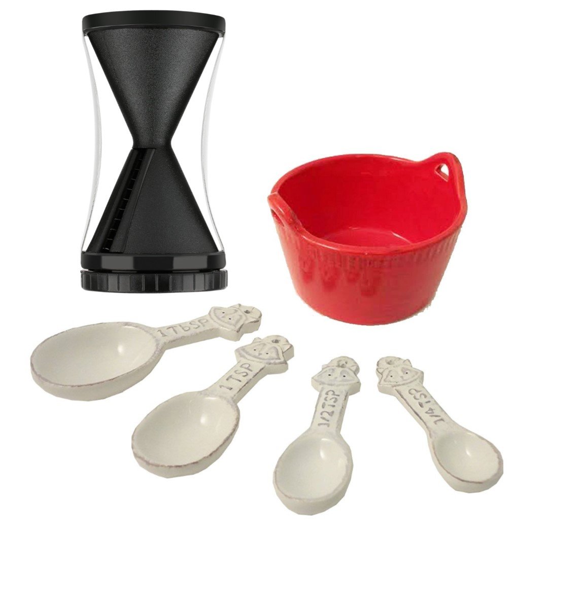 Top Vegetable Spiralizer Cutter Slicer Best 5 Piece Red Unusual White Ceramic Fox Measuring Spoons Utensils & Olive Bowl Set Cook Women Granny Household Birthday Stocking Stuffer Christmas Gift Idea best Measuring Tools & Scales