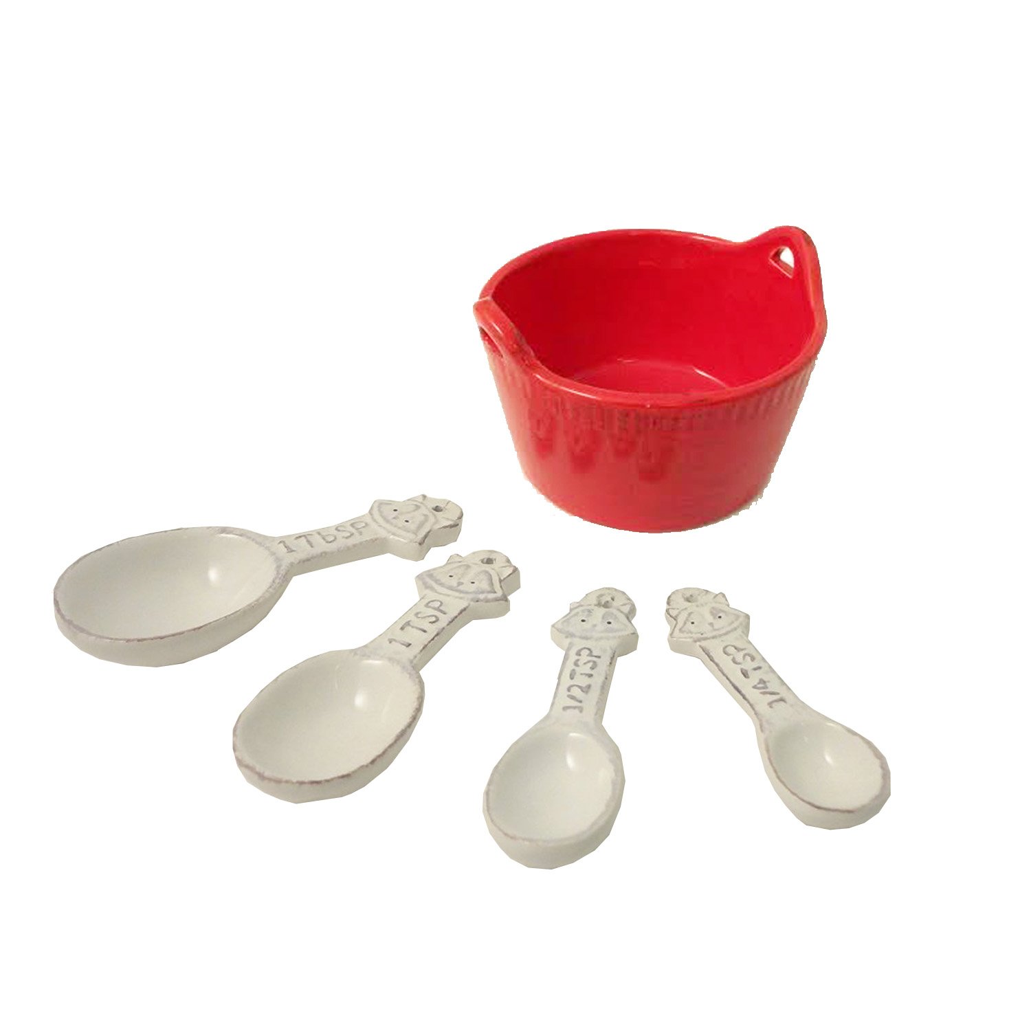 Best 5 Piece Red Unusual White Ceramic Measuring Spoons Utensils & Olive Bowl Set Cook Women Household Essentials Unique Weird Birthday Stocking Stuffer Christmas Gift Idea best Measuring Tools & Scales