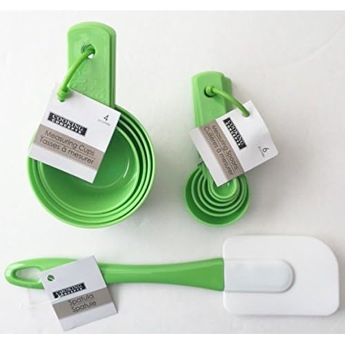 Colorfull Kitchen Gadget Kit (11 Pc. Set) (Green) is best for youColor:Green 11 pieces measuring cups and spoons set. Spoon measurements: 1/8 (0.6 ml) ¼ tsp (1.25ml), ½ tsp (2.5ml), 1 tsp (5ml), 1 Tsp (15ml). Cup measurements: ¼ cup (60ml), ½ cup (120ml), 2/3 cup (158ml), 1 cup (235ml). All pieces are dishwasher safe.