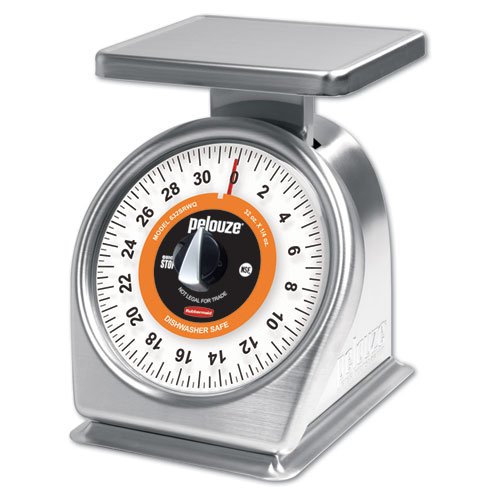 Rubbermaid Commercial Pelouze QuickStop Mechanical Portion-Control Scale, 32oz Cap, 7 x 5 Platform - Includes one scale. is best for youAlignment notch helps you achieve a high degree of measurement accuracy. Rotating dial simplifies zeroing out. Stainless steel casing and internal mechanism ensure long-lasting, rustproof performance. Dishwasher-safe scale may be fully submerged in water without adverse effects (if fully dried out before subsequent use). QuickStop needle. Scale Type: General Purpose; Electronic/Mechanical: Mechanical; Increments: 0.25 oz; Platform Size: 7' x 5'.
