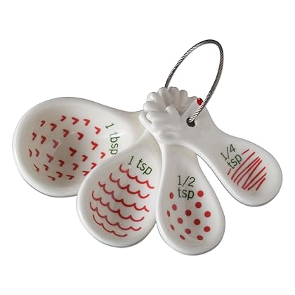 tag Reindeer Measuring Spoon Set Of 4 is best for youFun reindeer helps you mix up delicious treats in the kitchen this holiday season. Measuring spoon set is made from hand-painted earthenware and features embossed details that add additional whimsy. Each spoon is connected to the next on a stainless steel ring for convenience. This holiday measuring spoon set makes a cute gift for the Christmas baker in your life.