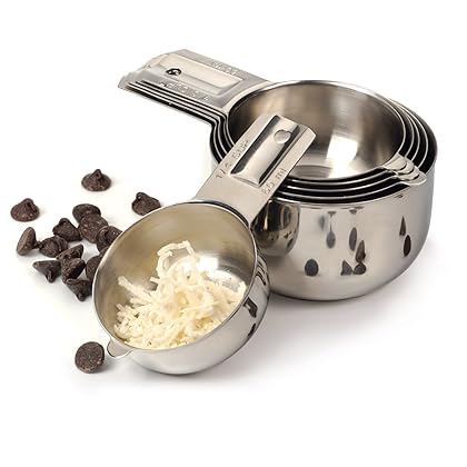 Endurance® Nesting Measuring Cups (set of 6) is best for youFor preparing a recipe accurately, a reliable set of measuring cups is a baker's necessity. This 18/8 stainless steel nesting set includes 1/4- cup, 1/3-cup, 1/2-cup, 2/3-cup, 3/4-cup and 1-cup measures. Each has a wide, comfortable handle that lets you reach easily into a canister for scooping.