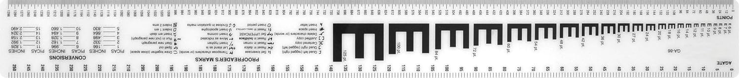 Westcott Graphic Arts Ruler, 12" (GA-86) is best for youWestcott brand focuses on creating innovative designs that provide style and quality to an assortment of school, craft, and office products. Winner of awards like the Teacher’s Choice and Good Design, Westcott continues to raise the bar. The inspiration that has gone into each of our products has not only won Westcott multiple achievements, but has also made us the #1 brand of scissors, rulers, sharpeners, and math tools.