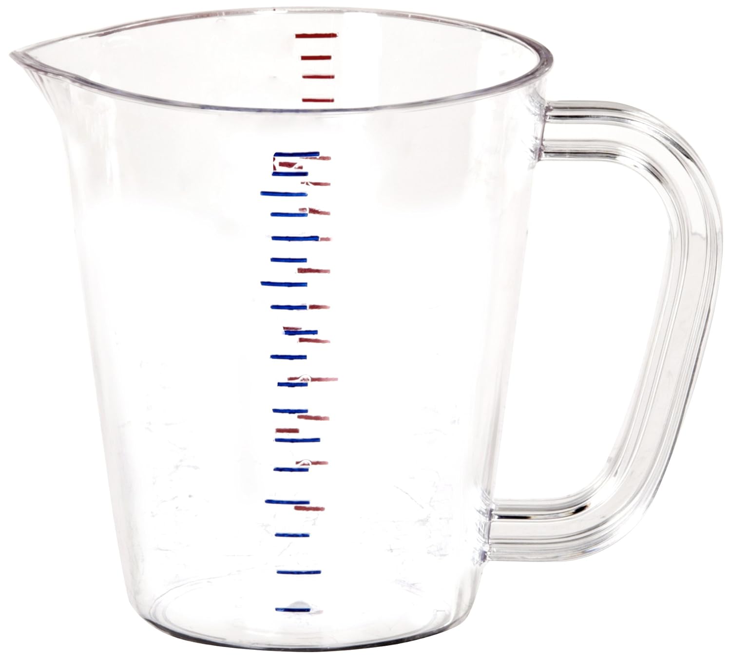 Carlisle 4314207 Polycarbonate Measuring Cup, 16 oz. Capacity, 4.75 x 5.13 x 4.19", Clear (Case of 6) is best for youThis Carlisle 4314207 16 oz. clear cup is a measuring cup for measuring and pouring wet and liquid ingredients. It is made of polycarbonate for resistance to detergent, stains, acids, and breakage, and has red measuring lines for US measurements and blue measuring lines for metric measurements. The measuring lines are located on the inside of the cup to facilitate reading from overhead for accurate measurement. This measuring cup has a spout to facilitate pouring liquids from the front, and oval-shaped walls to facilitate dispensing wet and liquid contents from the non-spouted side. It is dishwasher-safe, meets NSF International standards for use in food handling and processing, and can be recycled at facilities that accept containers with the resin identification code number '7.' This cup measures 4.75 x 5.13 x 4.19 inches (L x W x H). (L is length, the horizontal distance from front to back; W is width, the horizontal distance from left to right; H is height, the vertical distance from lowest to highest point.)Carlisle manufactures food service equipment and supplies and sanitary maintenance tools and supplies for commercial, industrial, and institutional facilities. The company, founded in 1954, is headquartered in Oklahoma City, OK.