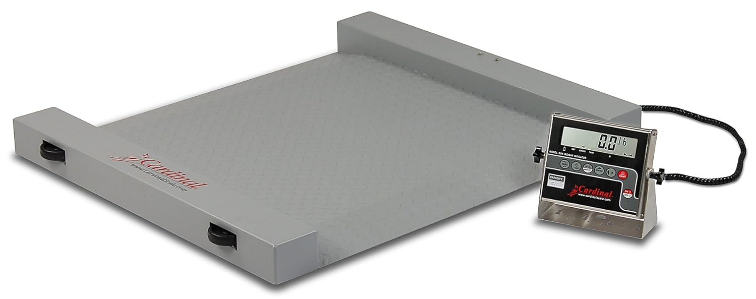 Detecto RW-1000 Portable Floor Scale, Electronic, 1,000 lb. Capacity, Mild Steel, 204 Indicator, 40.5" X 32.5" is best for youManufactured from the highest quality materials and technology to provide the most accurate weight readings possible. Capacity: 1,000 lb. x 5 lb./450 kg x 2 kg. Platform Size: 24.5 x 30 inches/62 x 76 cm (inside platform). power: 110 VAC power cord included. Can also use 6 C cell alkaline or rechargeable ni-cad batteries, not included.