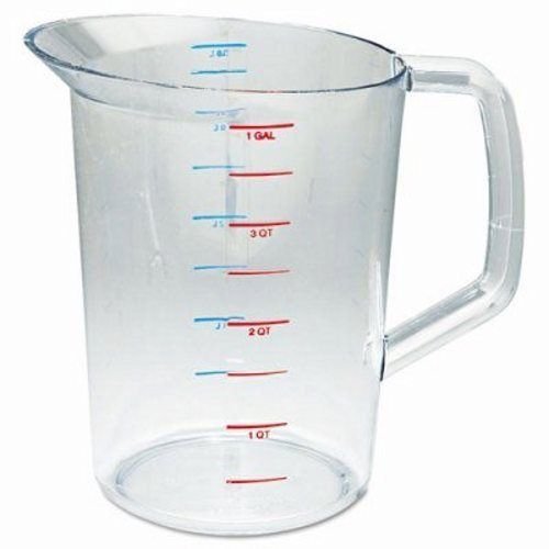 Rubbermaid Commercial Products 3218CLE Bouncer Measuring Cup44; 4qt. - Clear is best for youFeatures. Clear measuring cups for fast easy identification of contents.. Clear break-resistant polycarbonate.. Temperature range -40F-40C to 212F100C.. Long-lasting measurement markings in redblue.. Color - Clear. Capacity - 4 qt.