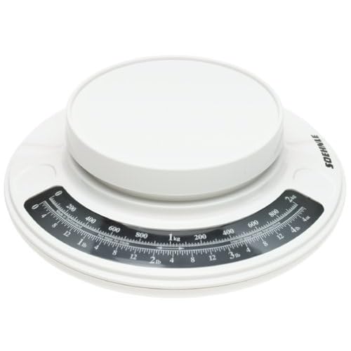 Soehnle 4-Pound Culina Scale is best for youAmazon.com The Swiss have long been known for their keen ability to measure time precisely. With this scale, they show that they also know how to accurately weigh ingredients for recipes or portions for diet plans. This lightweight Soehnle scale reads in pounds and ounces as well as in kilograms and grams. The 'add and weigh' feature means you can set a bowl on the platform, reset the dial to zero, add then accurately weigh an item you want to include, reset to zero again, and add the next ingredient without emptying the bowl. It can register up to 4 pounds, 4 ounces. The smooth plastic wipes off easily with a damp cloth for an easy clean. You won't need batteries or even electricity for this manual scale, so it's easy to take with you on fishing trips. Or, use it in your home office to weigh letters and packages. All Soehnle scales come with a 10-year warranty. --Linda Dahlstrom