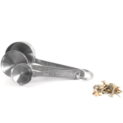 Stainless Steel Measuring Scoops, 3 Piece is best for youFulfill all your measuring needs with this set of stainless steel measuring scoops. This three piece set of spoons are held together with a key ring that allows for nesting, making this set compact and easy to store. Including a one teaspoon, a two teaspoon, and a one tablespoon measurement, this set is versatile and functional. A great addition to any kitchen!3 Measuring Spoons- approx 3-1/4' H x 1-1/4' W