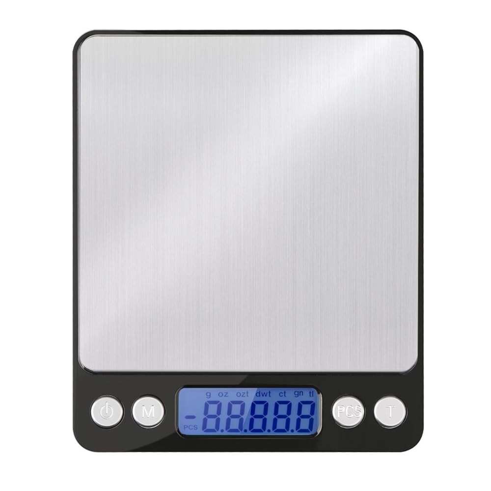 ✔ Engraved Measurement Markings - do not fade, wash off or wear out like printed ones✔ Superior Quality Stainless Steel - Rust Proof✔ Lightweight yet Sturdy and Durable✔ Food grade vibrant color silicone which offers firm grip and stylish look✔ Precision engineering to ensure accurate measurements✔ Ideal shape to easily stack them into each other for easy storage✔ Removable Silicone Grip for Ease of Cleaning✔ Sturdy Locking Rings to Hold corresponding pieces together✔ Elegant Surface Finish✔ Easy Measurements - Set of 10 different pieces to let you take a range of measurements✔ Long, narrow measuring spoons to fit into small spice jarsthe Erayco 0.001oz/0.01g 500g Digital Pro Pocket Scale with Back-Lit LCD Display Stainless Steel Black Modernize your home kitchen with user-friendly portioning simplicity. Easily measure your garnishes and ingredients by grams, milliliters, pounds and ounces with the quick unit conversion button. The digital scale features a handy auto-tare function so you can easily measure ingredients in a dish without having to do any math, so you can cut down on prep time to enjoy your meal. The scale is designed with a smooth stainless steel platform for easy cleaning and maintenance. Accent your countertop with a modern look. Otherwise, the slim design makes it easy to store in any kitchen cabinet or drawer. Although the scale is slim, it maintains the durability to withstand up to 11 pounds of weight. When the capacity is surpassed, the scale will alert you with a safe overload indication. Whether you're a beginner or a seasoned chef, this digital scale has the simplicity and practicality to create the perfect kitchen creations.Erayco 0.001oz/0.01g 500g Digital Pro Pocket Scale with Back-Lit LCD Display Stainless Steel Black is best for youErayco 500g Digital Pocket ScaleCompact Versatility This petite and portable digital weight scale has the accuracy to meet a high range of needs with consistent and reliable results. Quickly measure ingredients, postage, gems, medication and more with a weight capacity of up to 500 grams. The bright blue backlit LCD screen makes it easy to read the weight on the display. The scale is built with high quality stainless steel for a longer lifetime and easier maintenance. It's small and lightweight, making it easy to store and take out without excessive added weight, bulk or hassle.Count Pieces & Parts This digital table-top scale takes the work out of counting large quantities of small pieces. Instead of tediously separating and counting hundreds of parts or pieces through manual labor, simply pour them onto the scale platform and the scale will have the counted amount accurately calculated in less than a second. This feature is incredibly helpful for hunting, jewelry, and cooking. It's simple technology for smart living. The button of 'power', you can start-up and shutdown when press this button. The button of 'M', you can choose the proper measurement unit of g, oz, ozt, dwt, ct, gn, and tl.The button of 'T',you can reset or balance a tare weight of the product. The button of 'PCS', you can calculate the number of products.Specifications Weight Capacity: 500g (17.64 oz) Division: 0.01g (0.001 oz) Measurement Units: g, oz, ozt, dwt, ct, gn, tl Function Buttons: Mode / Unit / Tare / Pieces Auto-Off: 60 secondsWeight: 3.6oz Platform: 3.94' x 3.94' Dimensions: 4.92' x 4.13' x 0.60' / 4.33' x 5.12' x 1.00' (with case) Power: 2 x AAA Batteries Package Contents 1 x 500g Digital Pocket Scale 1 x Scale Cover 1 x Platform Cover 1 x User Guide 2 x AAA Batteries