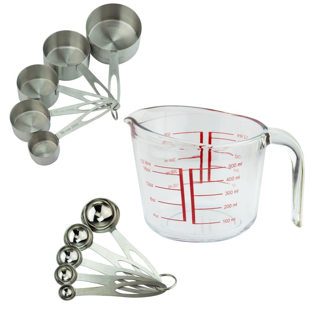 • The Teikis 11 Piece Measuring Set [5 Piece Measuring Cup + 5 Piece Measuring Spoon + 1 Measuring Glass (500ml)] is a