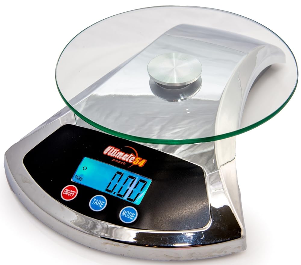 • The Ultimate54 Digital Kitchen Food Scale 22lb/10kg Capacity with LCD Display & Tare Function(Chrome) is a
