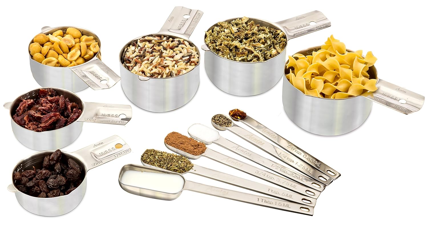 You buy 12-Piece Stainless Steel Measuring Cups and Spoons – Premium Metal Stackable Set – 6 Cups & 6 Spoons Nested Perfectly to Measure Dry and Liquid Ingredients by Acutoswith Coupon : LEOO30 will be discounted 30% price