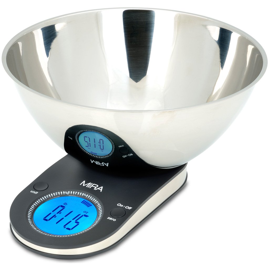 • The MIRA Brands Digital Kitchen Scale with Stainless Steel Bowl, 9.65-Inch, Black is a