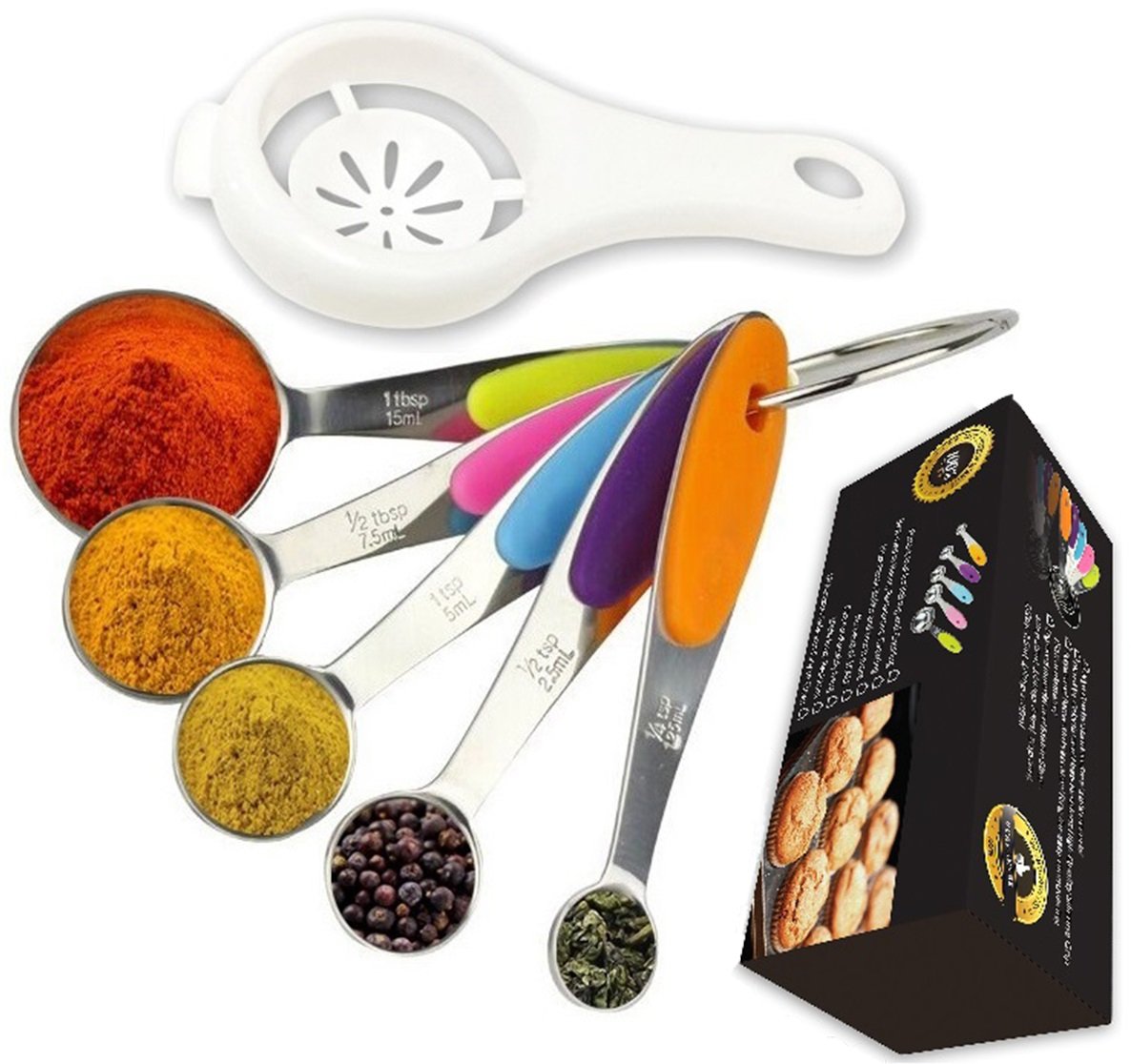 • The Perfect CHRISTMAS Gift! Cook & Bake With Style! Best Selling Stainless Steel Set of 5 Measuring Spoons In Premium Gift Box + Free Egg Separator, Engraved US And Metric Sizes - Durable - Space Saver! is a