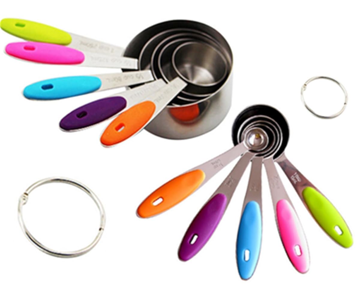 ✔ Engraved Measurement Markings - do not fade, wash off or wear out like printed ones✔ Superior Quality Stainless Steel - Rust Proof✔ Lightweight yet Sturdy and Durable✔ Food grade vibrant color silicone which offers firm grip and stylish look✔ Precision engineering to ensure accurate measurements✔ Ideal shape to easily stack them into each other for easy storage✔ Removable Silicone Grip for Ease of Cleaning✔ Sturdy Locking Rings to Hold corresponding pieces together✔ Elegant Surface Finish✔ Easy Measurements - Set of 10 different pieces to let you take a range of measurements✔ Long, narrow measuring spoons to fit into small spice jarsthe ShiRui Stainless Steel Measuring Cups and Spoons Set for Measuring Dry and Liquid Ingredients in Cooking and Baking - Set of 10 (5 Cups+5 Spoons) Modernize your home kitchen with user-friendly portioning simplicity. Easily measure your garnishes and ingredients by grams, milliliters, pounds and ounces with the quick unit conversion button. The digital scale features a handy auto-tare function so you can easily measure ingredients in a dish without having to do any math, so you can cut down on prep time to enjoy your meal. The scale is designed with a smooth stainless steel platform for easy cleaning and maintenance. Accent your countertop with a modern look. Otherwise, the slim design makes it easy to store in any kitchen cabinet or drawer. Although the scale is slim, it maintains the durability to withstand up to 11 pounds of weight. When the capacity is surpassed, the scale will alert you with a safe overload indication. Whether you're a beginner or a seasoned chef, this digital scale has the simplicity and practicality to create the perfect kitchen creations.ShiRui Stainless Steel Measuring Cups and Spoons Set for Measuring Dry and Liquid Ingredients in Cooking and Baking - Set of 10 (5 Cups+5 Spoons) is best for youColor:5 Cups+5 Spoons Overview: This is a sturdy and endurable stainless steel cups and spoons set both for dry and liquid ingredients. With accurate measurement, you do not need to worry that you may spoil a meal by adding too much or too less ingredients. Making a dilicious food, sharing with your beloved one. Specification: **Measuring Cups** -1/8-cup (30ML) -1/4-cup (60ML) -1/3-cup (80ML) -1/2-cup (125ML) -1cup (250ML) Net Weight: 288g **Measuring Spoons: - 1/4-tsp. (1.25ML) - 1/2-tsp. (2.5ML) - 1-tsp. (5ML) - 1/2-Tbsp. (7.5ML) - 1-Tbsp. (15ML) Net Weight: 130g Material: Stainless Steel Maximal circle diameter: 4cm Minimal circle diameter: 1.5cm Package Content: 5* Measuring Cups 5* Measuring Spoons 2* D-rings