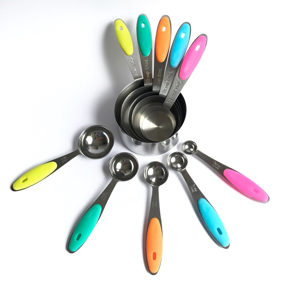 You buy 10 Piece Stainless Steel Measuring Cups and Measuring Spoons Set With Soft Silicone Handles by SARBOL Homewares - Colorful and Perfect for the Modern Kitchen with Coupon : LEOO30 will be discounted 30% price These decorative spoons are also super easy to clean! Dishwasher safe, stain proof, and ultra durable. Whether you’re measuring spices, baby formula, protein powder, or just about anything else, this spoon set will maintain its high level of performance and elegance for years to come!