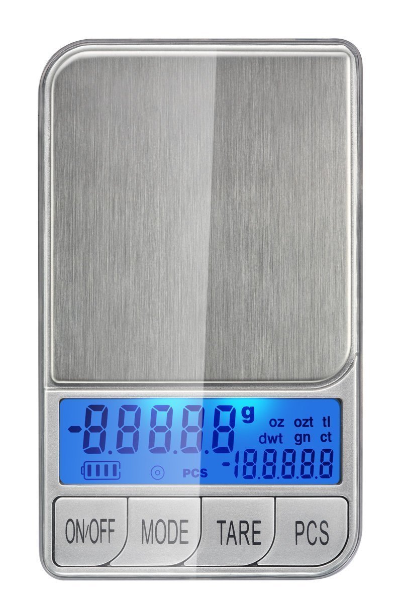 • The Smart Weigh DBL1KG Dual Display Digital Pocket Scale with Back-lit LCD Screen and PCS Function, Silver is a