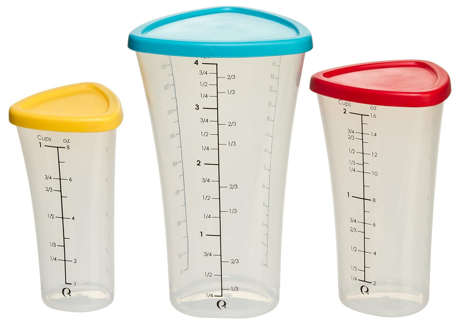✔ Engraved Measurement Markings - do not fade, wash off or wear out like printed ones✔ Superior Quality Stainless Steel - Rust Proof✔ Lightweight yet Sturdy and Durable✔ Food grade vibrant color silicone which offers firm grip and stylish look✔ Precision engineering to ensure accurate measurements✔ Ideal shape to easily stack them into each other for easy storage✔ Removable Silicone Grip for Ease of Cleaning✔ Sturdy Locking Rings to Hold corresponding pieces together✔ Elegant Surface Finish✔ Easy Measurements - Set of 10 different pieces to let you take a range of measurements✔ Long, narrow measuring spoons to fit into small spice jarsthe Prepworks from Progressive Measuring Trio Modernize your home kitchen with user-friendly portioning simplicity. Easily measure your garnishes and ingredients by grams, milliliters, pounds and ounces with the quick unit conversion button. The digital scale features a handy auto-tare function so you can easily measure ingredients in a dish without having to do any math, so you can cut down on prep time to enjoy your meal. The scale is designed with a smooth stainless steel platform for easy cleaning and maintenance. Accent your countertop with a modern look. Otherwise, the slim design makes it easy to store in any kitchen cabinet or drawer. Although the scale is slim, it maintains the durability to withstand up to 11 pounds of weight. When the capacity is surpassed, the scale will alert you with a safe overload indication. Whether you're a beginner or a seasoned chef, this digital scale has the simplicity and practicality to create the perfect kitchen creations.Prepworks from Progressive Measuring Trio is best for youPrecise pouring without the dribble, the Measuring Trio from Progressive pours perfectly every time. The tapered triangular shaped body provides an all-around secure grip. Sealing lids let you store leftovers or shake up a favorite marinade. The Progressive Measuring Trio neatly nests within one another for compact storage. Set includes three sizes; 1, 2 and 4 cup measures. Measure all liquids, hot or cold as these measuring cups are microwave safe. Not to be used to melt butter. This Trio is ideal for most cooking and baking tasks with measurement markings in cups, ounces and milliliters. 4, 2 and 1 cup capacities. Dimensions are 4.75 inches x 4.65 inches x 7.75 inches.