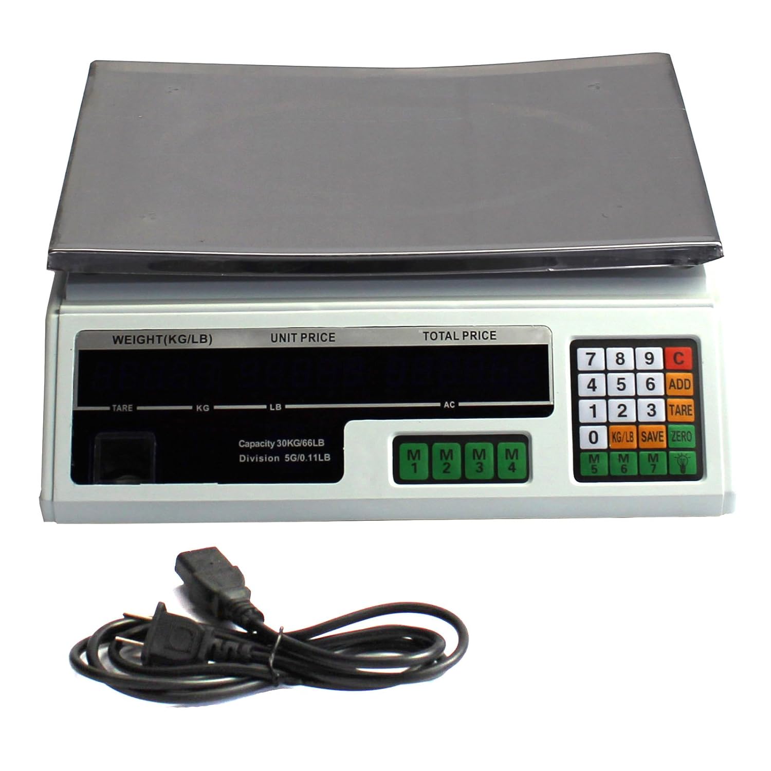 ✔ Engraved Measurement Markings - do not fade, wash off or wear out like printed ones✔ Superior Quality Stainless Steel - Rust Proof✔ Lightweight yet Sturdy and Durable✔ Food grade vibrant color silicone which offers firm grip and stylish look✔ Precision engineering to ensure accurate measurements✔ Ideal shape to easily stack them into each other for easy storage✔ Removable Silicone Grip for Ease of Cleaning✔ Sturdy Locking Rings to Hold corresponding pieces together✔ Elegant Surface Finish✔ Easy Measurements - Set of 10 different pieces to let you take a range of measurements✔ Long, narrow measuring spoons to fit into small spice jarsthe Digital Deli Weight Scale Price Computing Food Produce 60LB ACS-03 Modernize your home kitchen with user-friendly portioning simplicity. Easily measure your garnishes and ingredients by grams, milliliters, pounds and ounces with the quick unit conversion button. The digital scale features a handy auto-tare function so you can easily measure ingredients in a dish without having to do any math, so you can cut down on prep time to enjoy your meal. The scale is designed with a smooth stainless steel platform for easy cleaning and maintenance. Accent your countertop with a modern look. Otherwise, the slim design makes it easy to store in any kitchen cabinet or drawer. Although the scale is slim, it maintains the durability to withstand up to 11 pounds of weight. When the capacity is surpassed, the scale will alert you with a safe overload indication. Whether you're a beginner or a seasoned chef, this digital scale has the simplicity and practicality to create the perfect kitchen creations.Digital Deli Weight Scale Price Computing Food Produce 60LB ACS-03 is best for youSpecial Note: NOT LEGAL FOR TRADE.SpecificationsAC power: 110V (optional battery powered)Precision: .11 lbsMaximum weight: 66 lbsMinimum weight: 0.22 lbsMeasurement: Pounds and KilogramsWidth: 14' Length: 13' Height: 4 1/2' Weight: 8.5 lbs.Setup and SuggestionsAfter opening the box of your new digital price computing scale, insert the power cord and plug it in. Put the scale on a solid flat surface and adjust the four feet and use the level bubble to manually level your scale. Then examine your scale to ensure that the AC light is on, if not, check connections.WeightDo Not over load your scale with heavy goods, the maximum weight of the scale is 66 lbs. If you have exceeded your scales maximum weight limit the 'OL' words will appear and the scale will beep. If this does happen please remove goods from the scale to avoid damage.Note: Platform Measurements: Length 13' & Width 9'.Note: Underside of weighing platform has only 3 pins. This is not a manufacturing defect.Note: Displays Weight in LB and KG. There is a featured button where you can easily switch between the two.