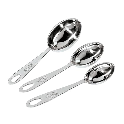 You buy Oggi 7628 Stainless Steel 3-Piece Oval Measuring Cup Set with Coupon : LEOO30 will be discounted 30% price These decorative spoons are also super easy to clean! Dishwasher safe, stain proof, and ultra durable. Whether you’re measuring spices, baby formula, protein powder, or just about anything else, this spoon set will maintain its high level of performance and elegance for years to come!