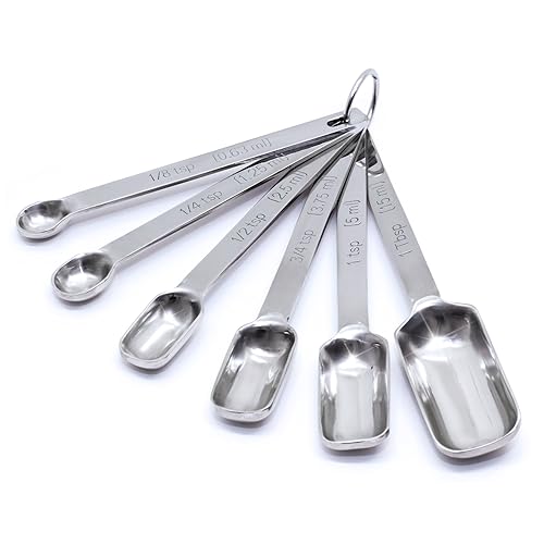 • The Set of 6 Professional 18/8 Stainless Steel Measuring Spoons | Engraved U.S & Metric Sizes | Teaspoons & Tablespoons for Baking & Cooking | Narrow & Stackable Design | Fits Small Jars By L&N Kitchen is a
