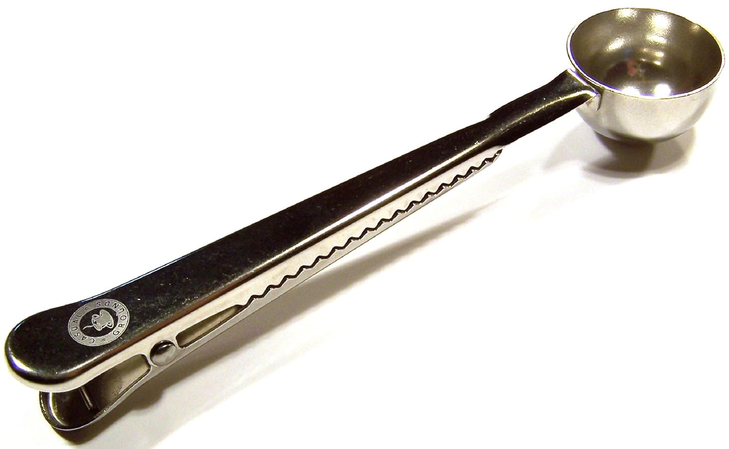• The Casual Grounds Stainless Steel Coffee and Tea Scoop with Bag Clip is a
