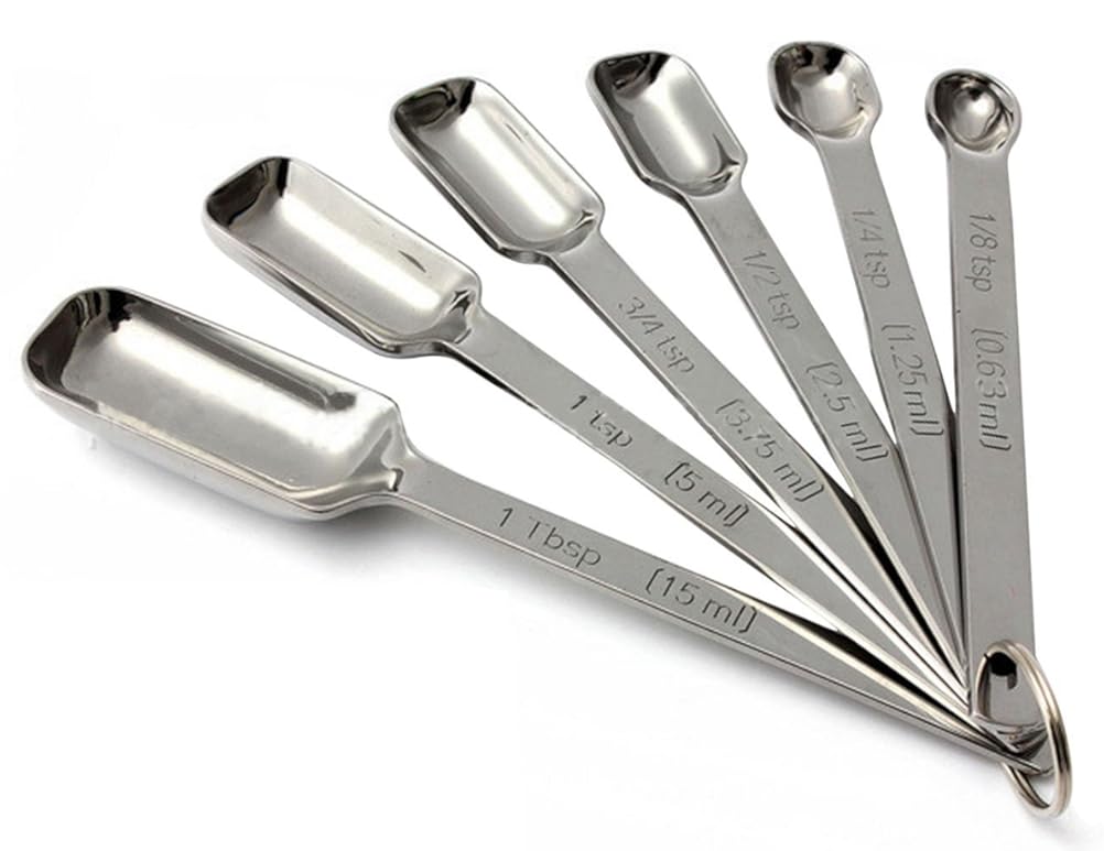 - BAKE & COOK LIKE A 5-STAR CHEF! The Oliver & Kline 6-Piece Measuring Spoon Set is an absolute must-have for precisely measuring liquids and dry ingredients. In this beautiful stainless-steel set you'll find: 1 tablespoon (15 ML), 1 teaspoon (5 ML), 3/4 tsp (3.75 ML), 1/2 tsp (2.5 ML), 1/4 tsp (1.25 ML) and 1/8 tsp (0.63 ML).