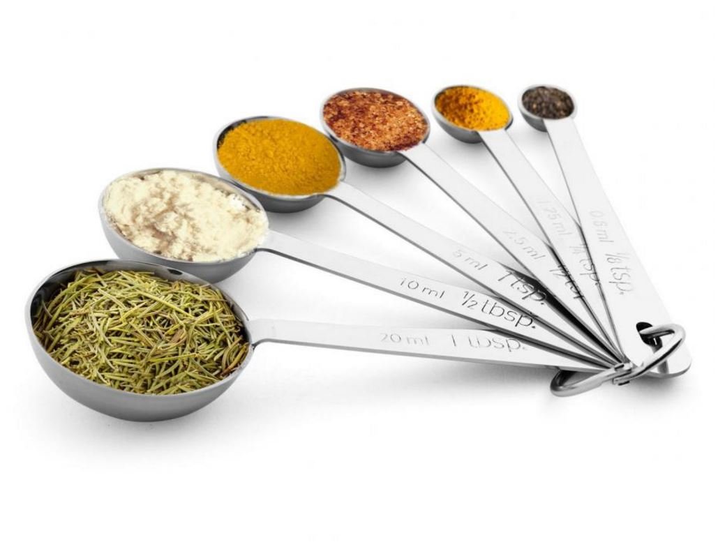 - BAKE & COOK LIKE A 5-STAR CHEF! The Oliver & Kline 6-Piece Measuring Spoon Set is an absolute must-have for precisely measuring liquids and dry ingredients. In this beautiful stainless-steel set you'll find: 1 tablespoon (15 ML), 1 teaspoon (5 ML), 3/4 tsp (3.75 ML), 1/2 tsp (2.5 ML), 1/4 tsp (1.25 ML) and 1/8 tsp (0.63 ML).