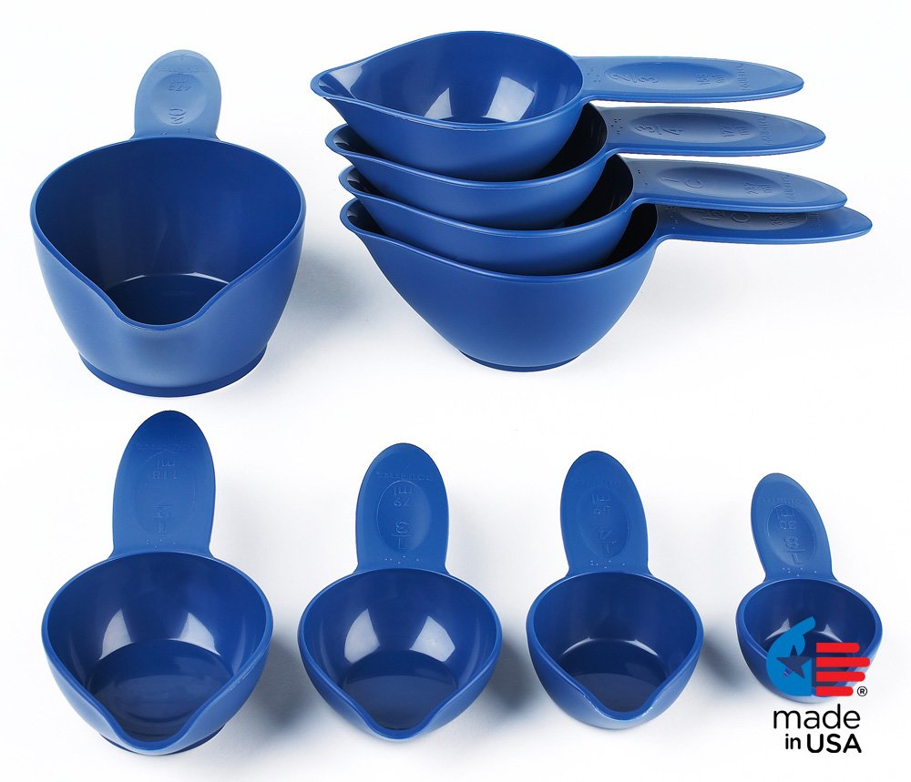 ✔ Engraved Measurement Markings - do not fade, wash off or wear out like printed ones✔ Superior Quality Stainless Steel - Rust Proof✔ Lightweight yet Sturdy and Durable✔ Food grade vibrant color silicone which offers firm grip and stylish look✔ Precision engineering to ensure accurate measurements✔ Ideal shape to easily stack them into each other for easy storage✔ Removable Silicone Grip for Ease of Cleaning✔ Sturdy Locking Rings to Hold corresponding pieces together✔ Elegant Surface Finish✔ Easy Measurements - Set of 10 different pieces to let you take a range of measurements✔ Long, narrow measuring spoons to fit into small spice jarsthe Pourfect 9-Piece Measuring Cup Set, Blue Willow Modernize your home kitchen with user-friendly portioning simplicity. Easily measure your garnishes and ingredients by grams, milliliters, pounds and ounces with the quick unit conversion button. The digital scale features a handy auto-tare function so you can easily measure ingredients in a dish without having to do any math, so you can cut down on prep time to enjoy your meal. The scale is designed with a smooth stainless steel platform for easy cleaning and maintenance. Accent your countertop with a modern look. Otherwise, the slim design makes it easy to store in any kitchen cabinet or drawer. Although the scale is slim, it maintains the durability to withstand up to 11 pounds of weight. When the capacity is surpassed, the scale will alert you with a safe overload indication. Whether you're a beginner or a seasoned chef, this digital scale has the simplicity and practicality to create the perfect kitchen creations.Pourfect 9-Piece Measuring Cup Set, Blue Willow is best for youColor:Blue Willow Introducing the Pourfect line of products- the only complete mix, measure and pour set available in the market today to help perfect standard baking gadgets. Made entirely in the USA, Pourfect Products address common frustrations and mishaps in the kitchen to make food preparation easier, more accurate and tidier for anyone. The Pourfect Product line will complement any kitchen's decor and KitchenAid appliances. In addition, the entire line is extremely ergonomic and light-weight, making it easier for people with arthritis and carpal tunnel syndrome to grip them. The Pourfect measuring cups and spoons feature calibrated measurements and bold text in English, Metric and Braille. Each has a matte finish, comfort grip with thumb depression, a polished bowl for easy release, and a dripless spout with a fine edge that assures no drips. The 6 largest cups have a rubber non-slip ring to prevent slipping on a counter surface. This 9 piece measuring cup set in blue willow features the following cup sizes: 1/8, 1/4, 1/3, 1/2, 2/3, 3/4, 1 cup, 1-1/2 Cup and 2 Cup. This set stacks to a 3-inch footprint for easy storage in a drawer. All Pourfect Products are dishwasher and microwave safe.